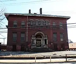 An addition was made in 1904, and the auditorium and gymnasium were added in 1931. The interior includes terrazzo floors and marble wainscotting. The exterior includes an ornately decorated door on the southwestern side of the building (perhaps Romanesque-inspired Renaissance Revival) with statues on pillars, a bas-relief sculpture over the door, and human faces near a marble portion of the roof. It was listed on the National Register of Historic Places in 1986.[1][2]