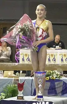 After the World Championships, Iordache competed at the Arthur Gander Memorial in Morges, Switzerland where she won the gold medal in the all-around.[50] She then competed at the Swiss Cup, which is a team competition where each country is represented by one female and one male gymnast. With her teammate Andrei Muntean, Romania won the gold medal ahead of Germany, Switzerland, and Ukraine.[51] She competed at the Elite Gym Massilia in Marseille, France where she won the gold medal in the all-around, the silver medal on vault behind Russia's Alla Sosnitskaya, and the gold medal on both balance beam and floor exercise.[52] Then, she won the silver medal in the all-around at the Stuttgart World Cup behind American Elizabeth Price.[53] Her last competition of the season was the Glasgow World Cup where she won the gold medal in the all-around.[54]
