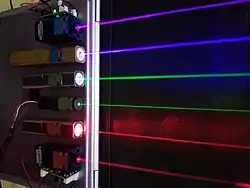 - 670 nm: AlGaInP bar code readers, first diode laser pointers (now obsolete, replaced by brighter 650 nm and 671 nm DPSS)