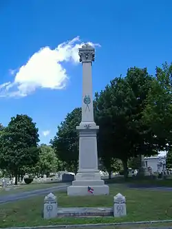 A native of Hopkinsville then living in New York City, John C. Latham, desired that deceased veterans on both sides in Hopkinsville be buried together. Latham was a millionaire in the cotton business, who fought for the Confederate States of America during the conflict. However, most of the Union veterans had already been buried at the Fort Donelson National Cemetery, so instead the mass burial would involve only Confederate veterans, 101 in total, that were scattered at various burial locations. Latham gave $14,000 to the city of Hopkinsville for the project. The dedication of the monument and the accompanying graves was on May 19, 1887, with a book, The Story of a Monument, was published by Dennison & Brown in 1888 with notes about the monument and its dedication. Latham would also donate $50,000 for the construction of turnpikes.[2][3][4]