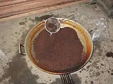 Latík in its original sense in the Visayan languages literally means 'syrup' (equivalent to arnibal in Hiligaynon). It can refer to any type of thick sweetened liquids including jam.[2] In the most common usage, however, latik means a syrupy condiment derived from reducing coconut milk and sugar.[3][4]
