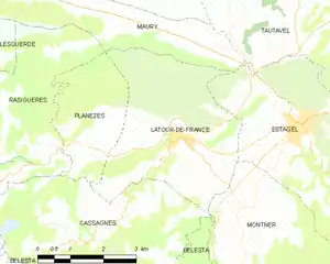 Latour-de-France is located in the canton of La Vallée de l'Agly and in the arrondissement of Perpignan.