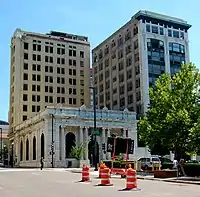 The Laura Street Trio is a group of three historic buildings located on and near Laura Street in downtown Jacksonville, Florida. The Trio consists of two perpendicularly arranged skyscrapers, the Florida Life Building and the Bisbee Building, plus a third structure, the Old Florida National Bank (or Marble Bank), which is framed by the other two in a unique pattern. The three buildings, constructed in the wake of the Great Fire of 1901, are architecturally significant, but are currently endangered.[1][2]