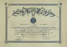 During his absence he was tried in absentia by the Ottoman Court of Bitola and was acquitted. He returned to Macedonia in early 1907 and continued the action until the time of the Young Turk Movement in 1908, which marked the end of the hard phase of the Macedonian Struggle because of the belief, at this time, that the liberties of minorities in the Ottoman Empire would be respected. In late July 1908, the Greek guerilla groups in the region of Bitola vilayet took an order from the Greek Consulate of Bitola to discontinue their action, but not to surrender their weapons and withdraw to the mountains. This order of the Greek Consulate conveyed by Lazaros to the rebel group of Simos Ioannidis which at the time was acting in the Pisoderi area.[42] The formation of the Young Turk Parliament had not improved the situation in Macedonia.[43] Soon the hopes of changing the behavior of the Young Turks disappointed. In early September 1908, was established the new organization Panhellenic Organosis with Colonel Panagiotis Daglis as Director General. A circular to ..... especially to all the Offices and Agents .... gives guidance on the operation of the organization and communicated to the agent Lazaros Tsami that ".... in general is under the supervision of the Consuls to announce any such action ..."[44] In 1912, Lazaros as president of the Community of Pisoderi, covered the action of Vasilis Balkos a Greek agent from Arta, initially in the capacity of the Director of Modestos School who was wearing even a priest’s robe and subsequently as acting as Director of the Greek Schools of the Florina region assumes the direction of the struggle in the area.[45] Reports later received by the Greek Government on the actions of local rebel bodies by Tsontos Vardas and Special Envoy Vasilios Xirouchas and from Pavlos Giparis, convince the Greek Prime Minister Eleftherios Venizelos that his decision to withdraw the Greek forces from Macedonia was wrong.[46]
