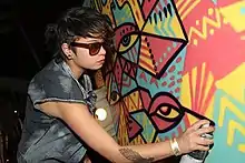 Diana Ordóñez (born 1987), known professionally as LeDania,[1] is a Colombian multimedia artist based in Bogotá. Known mostly for her graffiti murals, LeDania also works in photography, graphic design, advertising, artistic makeup, and decorative items such as clothing and accessories.[2]