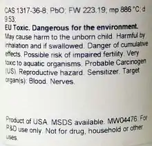 - "Lead compounds (as Pb)". Immediately Dangerous to Life or Health Concentrations (IDLH). National Institute for Occupational Safety and Health (NIOSH).