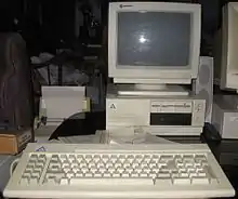 The Leading Edge Model D is an IBM clone first released by Leading Edge Hardware in July 1985. It was initially priced at $1,495 configured with dual 5.25" floppy drives, 256 KB of RAM, and a monochrome monitor. It was manufactured by South Korean conglomerate Daewoo and distributed by Canton, Massachusetts-based Leading Edge.[1] Engineer Stephen Kahng spent about four months designing the Model D[2] at a cost of $200,000.[3] Kahng later became CEO of Macintosh clone maker Power Computing.