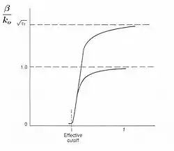 A typical example of a uniform leaky-wave antenna is an air-filled rectangular waveguide with a longitudinal slot. This simple structure illustrates the basic properties common to all uniform leaky-wave antennas. The fundamental TE10 waveguide mode is a fast wave, with , where k0 is the vacuum wavenumber. The radiation causes the wavenumber kz of the propagating mode within the open waveguide structure to become complex. By means of an application of the stationary-phase principle, it can be found in fact that: