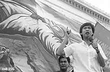 ![]() Lean Alejandro (standing with a microphone) during a students' protest against Marcos | |