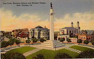 Lee Circle is a central traffic circle in New Orleans, Louisiana, which featured a monument to Confederate General Robert E. Lee between 1884 and 2017. The monument was a bronze statue by Alexander Doyle, a prominent American sculptor known for statues of Civil War figures. Lee Circle is located at the intersection of St. Charles and Howard Avenues. Prior to the erection of the monument, the location was known as Tivoli Circle or Place du Tivoli.[1][2][3] Tivoli Circle was an important, central point in the city, as it linked upriver areas with downriver areas. It was a common local meeting point and the site remains a popular place to gather for Mardi Gras parades.