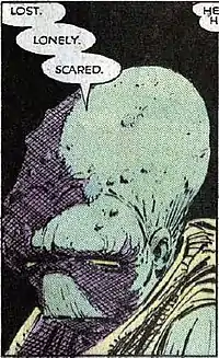 The green-skinned Leech was orphaned as a toddler. His parents left him to die when his mutations became apparent. He was found by the Morlock Caliban and taken to a human-looking mutant woman named Annalee who raised him and several other young mutant orphans as her children. He made friends with X-Factor's ward named Artie Maddicks and had a few brief encounters with the X-Men.