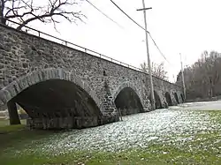 Lenape Bridge is a historic stone arch bridge located in Birmingham Township and Pocopson Township, Chester County, Pennsylvania. It has a seven spans, each 44-foot-long (13 m), with a total length of 308-foot (94 m). The bridge was constructed in 1911–1912, of random rubble stone.[2]