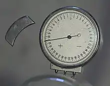 A lens clock is a mechanical dial indicator that is used to measure the dioptric power of a lens. It is a specialized version of a spherometer. A lens clock measures the curvature of a surface, but gives the result as an optical power in diopters, assuming the lens is made of a material with a particular refractive index.