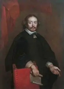 When in 1648 Erasmus Quellinus was given the general artistic direction over the decorations for the Joyous Entry into Antwerp of the newly appointed governor of the Habsburg Netherlands Archduke Leopold Wilhelm, Leo van Heil worked as Quellinus' architectural assistant.[4] The Archduke became his patron and appointed him as his court architect and commissioned various projects from van Heil, including a stone gate for the Archduke's palace in Brussels.[5]