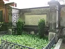 His philosophical view of mathematics put him in conflict with several mathematicians over the years, notably straining his relationship with Weierstrass, who almost decided to leave the university in 1888.[3] Kronecker died on 29 December 1891 in Berlin, several months after the death of his wife. In the last year of his life, he converted to Christianity.[2] He is buried in the Alter St Matthäus Kirchhof cemetery in Berlin-Schöneberg, close to Gustav Kirchhoff.