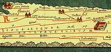 The Punic name of the settlement was written LPQ (Punic: 𐤋𐤐𐤒) or LPQY (𐤋𐤐𐤒𐤉),[2][3][4] signifying either a new "construction"[3] or a "naval station".[1] Phoenician colonies often duplicated their names, as with the two "New Towns" distinguished in English as Carthage and Cartagena. This name was hellenized Léptis (Greek: Λέπτις).[5] Under the Romans, the Punic name was Latinized as Lepcis or Leptis. It was known variously as Leptis Parva, Leptis Minor, or Leptiminus, all meaning "Lesser Leptis" to distinguish it from the "Greater Leptis" in what is now Libya.[1]