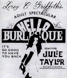 Griffith also produced Hello Burlesque, a live stage show featuring showgirl Julie Taylor, "Miss Sex 5th Avenue."