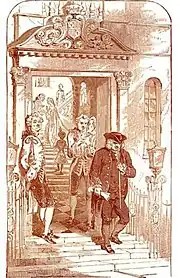 Johnson began work on his Dictionary in 1746 and although the consortium of booksellers that commissioned the work provided him with £1,575 as expenses, Johnson also sought subscriptions from literary patrons among the aristocracy.[3] One of those to receive a request for patronage was Lord Chesterfield, a noted patron of the arts. Johnson visited Chesterfield but, according to Johnson's account, he was kept waiting for a long time and was treated dismissively by Chesterfield when they eventually met. Chesterfield sent Johnson £10 but offered no greater support to Johnson through the seven further years it took him to compile the Dictionary. A degree of genteel mutual antipathy thereafter existed between the two men, Chesterfield regarding Johnson as a "respectable Hottentot, who throws his meat anywhere but down his throat" and as "uncouth in manners".[4] Johnson, in turn, was disparaging of both Chesterfield's nobility and his intellect: "This man, I thought, had been a Lord among wits; but I find he is only a wit among Lords."[4]