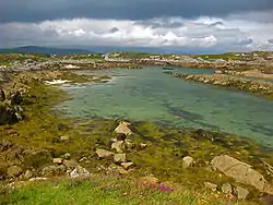Lettermullen, (Irish: Leitir Mealláin, meaning 'Mealláin's rough hillside' or possibly "the hill with the mill"), is a small island and village on the coast of southern Connemara in County Galway, Ireland. It is about 58 km (36 mi) west of Galway city, at the far western end of Galway Bay, Lettermullen is the westernmost of three islands; Lettermullen, Gorumna and Lettermore, along with smaller islands collectively known as Ceantar na nOileán ("District of the Islands") connected to the mainland by the bridges and causeways of R374.[1] Lettermullen is in the parish of Kilcummin, barony of Moycullen, and province of Connaught. It forms one side of Kiegall Bay, and its northern end is part of the shore of Casheen Bay. The island comprises about 100 hectares (250 acres) of arable and pasture land. The inhabitants are chiefly employed in herring and cod fisheries and in the collection of seaweed for manure.