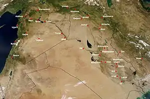 The Levantine corridor is the relatively narrow strip between the Mediterranean Sea to the northwest and deserts to the southeast which connects Africa to Eurasia. This corridor is a land route of migrations of animals between Eurasia and Africa. In particular, it is believed that early hominins spread from Africa to Eurasia via the Levantine corridor and Horn of Africa.[2] The corridor is named after the Levant.