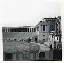 Several noted conductors appeared at the stadium in concert with the Lewisohn Stadium Symphony Orchestra, the New York Philharmonic and the Metropolitan Opera Orchestra. Alfredo Antonini conducted a series of open-air summer concerts at the stadium for three decades during the 1940s, 1950s and 1960s.[10][11][12] His Italian Night concerts often attracted an audience of over 13,000 guests for a single performance and featured noted soloists from the operatic stage including Licia Albanese and Richard Tucker.[13][14] Both Leonard Bernstein[15] of the New York Philharmonic and Kurt Adler of the Metropolitan Opera also made appearances at the stadium as conductors. Guest appearances were also made at the stadium's podium by: Pierre Boulez,[16] Andre Kostelanetz,[17] Henry Lewis.[18] Dimitri Mitropoulos,[19] Julius Rudel,[20] Alexander Smallens,[21] Max Steiner,[22] Alfred Wallenstein,[23] and Mark Warnow.[24]
