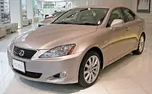 The Lexus IS (XE20) is the second generation of the Lexus IS line of compact executive cars. Sold by Lexus since 2005, the line includes multiple V6 gasoline-powered models, in four-door sedan and two-door coupé convertible body styles. Additional sedan models also feature inline-four diesel powertrains, and an F marque version, the IS F, features a V8 engine. A pre-production car of the second generation IS model was first shown at the 2005 Geneva Auto Show, with the production version debuting at the 2005 New York Auto Show. The second generation was only available as a sedan until the two-door coupé convertible variants debuted in 2008.