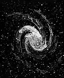 Halloran's series, Deep Sky Companion (2013, cliché-verre prints), is a permanent installation of 110 circular works at The Cahill Center for Astronomy and Astrophysics, at Caltech in Pasadena, CA. This series delves deep into the universe to explore the mystery between the known and unknown. Her collection references the scientific discoveries of deep sky objects, classified and catalogued by French astronomer, Charles Messier (1730–1817). As Messier translated his observations into reproductions, Halloran illustrates her own response to the 110 astronomical findings. While in a more simple pursuit of comets, Messier's unexpected observations were far greater, discovering whole galaxies and interstellar nebulae. In a similarly exploratory fashion, Halloran's procedure is largely a matter of chance, as the inks and prints are whim to natural and chemical processes. While entirely calculated, Halloran's works channel a similar uncertainty Messier faced. She reinterprets Messier's personal experience, enlivening a mystery and wonder that is often lost to scientific frustrations. Deep Sky Companion does not dwell in the unknown, but is energized by the fascinations of mystery. Halloran collaborated with architect David Ross to create the perfect physical and structural layout for the exhibition. The 110 photographic works climb upwards through three stories of architect Thom Mayne's unique building of slanted ceilings and extreme planes, forcing viewers to mimic the physical experience of astronomers observing objects in deep space.[14]