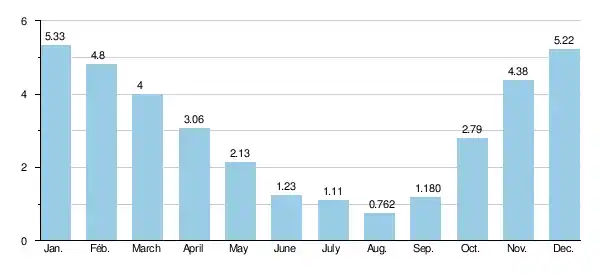 Mean monthly flow rate of the Liane (in m³/s) measured at the Hesdigneul-lès-Boulogne hydrological station