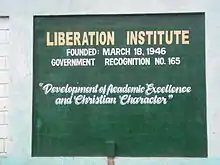 Liberation Institute is a Christian academic institution located in Calamba, Misamis Occidental, Philippines. The institute currently offers Pre-Elementary, Grade School, and High School.