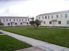 The new facility opened 243 single-family units opened to tenants February 6, 1937.[1] Built just west of the north Miami neighborhoods of Buena Vista and Lemon City, opposition to the proximity of the new apartments to the mostly white communities led to the erection of a 4-foot-tall (1.2 m) wall along West 12th Avenue from North 62nd Street north to 71st Street, most of which was torn down since the 1950s. Construction of I-95 and I-395/State Road 836 (then, the North-South and East-West Expressways, respectively) purged thousands of African Americans from Overtown into other black area communities like the burgeoning Liberty Square and surrounding Liberty City area.[3]