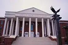 The Hancock Welcome Center celebrated its ribbon cutting ceremony on December 7, 2012. It is a three-level, 33,000-square-foot Jeffersonian-style building featuring an atrium, boardroom, theater, lounges, a banquet hall, several smaller counseling rooms, and a patio with a view of the Blue Ridge Mountains.[76] The Jerry Falwell Sr. Center: Inspiring Champions for Christ, opening in 2023, will be attached to the Hancock Welcome Center.[77][78]