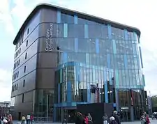 Cardiff Central Library (Welsh: Llyfrgell Ganolog Caerdydd) is situated in The Hayes area of the city centre of Cardiff. It opened on 14 March 2009 and officially being opened a few months later on 18 June 2009 by the Manic Street Preachers.[16]