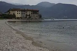 Lierna Castle (Italian: Castello di Lierna) is a castle on the eastern side of Lake Como in Lombardy, Italy. The castle is built on a peninsula that protrudes into the lake[1] and consists of a group of connected buildings, rather than a single building. The main portion of the current buildings was constructed in the 10th century in Romanesque style upon former Roman ruins.[2] The castle includes the 11th-century church of Saints Maurice and Lazarus (Chiesa dei Santi Maurizio e Lazzaro), associated with the Order of Saints Maurice and Lazarus.[2]