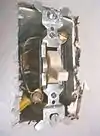 The first light switch employing "quick-break technology" was invented by John Henry Holmes in 1884 in the Shieldfield district of Newcastle upon Tyne.[2] The "quick-break" switch overcame the problem of a switch's contacts developing electric arcing whenever the circuit was opened or closed. Arcing would cause pitting on one contact and the build-up of residue on the other, and the switch's useful life would be diminished. Holmes' invention ensured that the contacts would separate or come together very quickly, however much or little pressure was exerted by the user on the switch actuator. The action of this "quick break" mechanism meant that there was insufficient time for an arc to form, and the switch would thus have a long working life. This "quick break" technology is still in use in almost every ordinary light switch in the world today, numbering in the billions, as well as in many other forms of electric switch.