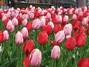 Tulips have been cultivated since at least the tenth century in Persia.[58] Tulip production has two main markets: cut flowers and bulbs. The latter are used, in turn, to meet the demand for bulbs for parks, gardens, and home use and, secondly, to provide the necessary bulbs for cut flower production. International trade in cut flowers has an approximate total value of 11 billion euros, which provides an indication of the economic importance of this activity. The main producer of tulip bulbs is the Netherlands, a country that accounts for 87% of the global cultivated area, with approximately 12,000 hectares. Other leading producers include Japan, France and Poland. Approximately ten other countries produce commercial tulips, largely for the domestic market. By contrast, the Netherlands is the leading international producer, to the extent of 4 billion bulbs per annum. Of these, 53% are used for the cut flower market and the remainder for the dry bulb market. Of the cut flowers, 57% are used for the domestic market in the Netherlands and the remainder exported.[59][60]