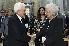 On 18 February 2020, during the Sapienza University of Rome academic year inauguration, also attended by President Mattarella, she was awarded a PhD honoris causa in European history, which she dedicated to her father Alberto, "killed for the guilt of being born (Jewish)".[22]