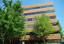 Developed by the Trammell Crow Company beginning in 1980, the first building at Lincoln Center was completed in 1981.[2][6] Additional buildings were completed in 1985, 1988, and 1989.[2] The complex was annexed by Tigard in 1986 after a state commission decided in their favor over Beaverton and Portland.[7] In 1990, Trammell Crow sold the property to the Japanese firm Seiyu International Corporation, headed by Yashimitsu Misawa, for $120 million.[8]
