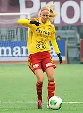 Copenhagen-born Røddik Hansen left Brøndby IF for newly promoted Damallsvenskan club Tyresö FF ahead of the 2010 season, rejecting a competing offer from the American Women's Professional Soccer (WPS).[4] She spent three seasons playing at left-back, before moving inside to centre back when the Swedish club signed Sara Thunebro in 2013.[5]