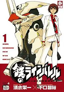 Linebarrels of Iron (鉄のラインバレル, Kurogane no Rainbareru) is a Japanese manga series created by Eiichi Shimizu and Tomohiro Shimoguchi. The series was first serialized in Akita Shoten's monthly seinen manga magazine, Champion Red, in 2005.[4][5] It has since been compiled into 24 tankōbon, as of October 20, 2014.[6] The story centers on Kouichi Hayase, a fourteen-year-old boy living a mediocre life, until an accident turns him into the pilot of a gigantic robot called "Linebarrel" and leads him to encounter a mysterious girl.