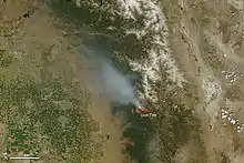 ![]() The Lion Fire as seen from space via MODIS satellite on July 29, 2011. | |