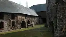 - Farmer's cottage (18th-century, between the upper castle gatehouse and the lower castle tithe barn), with living quarters, stable, barn, and a small courtyard.