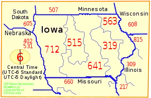 Numbering plan areas of Iowa and neighboring regions
