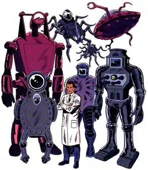 The Mini-Slayers were small spider-like robots used by Alistair Alphonso Smythe to spy on Spider-Man. Individually, Mini-Slayers are weak, though they can be a nuisance in large numbers. During the "Invasion of the Spider-Slayers" saga, Spider-Man captured a Mini-Slayer and used it to find Alistair's hideout. Afterward, the Mini-Slayers were wiped out by the FBI, Spider-Man, and the Avengers.[34] Alistair also used Mini-Slayers to blackmail J. Jonah Jameson into helping him in a plot against Spider-Man, threatening to use the small robots on Jonah's family. When Alistair had his Spider-Slayer army attack Spider-Man, a Mini-Slayer managed to latch onto the hero's face and read his mind, transmitting thoughts of his loved ones to the other Slayers, who began to target them. Spider-Man managed to remove and destroy the Mini-Slayer, the rest of the Mini-Slayers deactivating after the Mark XVIII Spider-Slayer was destroyed.[4]