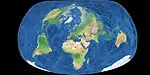 Pseudoazimuthal | Equal-area | Ernst Hammer | Modified from azimuthal equal-area equatorial map. Boundary is 2:1 ellipse. Variants are oblique versions, centred on 45°N. |