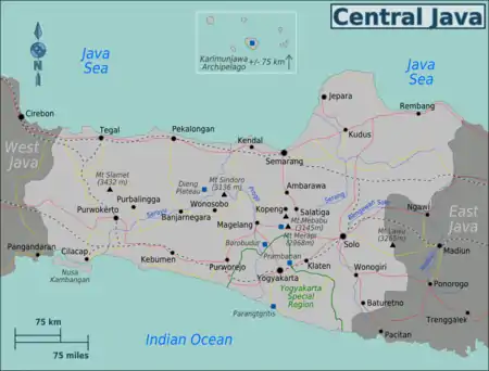 Central Java map with major rivers.