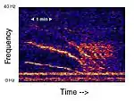 The name was given because the sound slowly decreases in frequency over about seven minutes. It was recorded using an autonomous hydrophone array.[8] The sound has been picked up several times each year since 1997.[9] One of the hypotheses on the origin of the sound is moving ice in Antarctica. Sound spectrograms of vibrations caused by friction closely resemble the spectrogram of the Slow Down. This suggests the source of the sound could have been caused by the friction of a large ice sheet moving over land.[9]