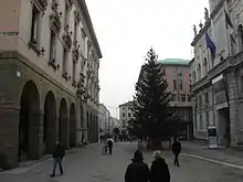 Martyrs' Square (Italian: Piazza dei Martiri, also known as Campedel) in Belluno, is called the "living room" of the city.[5] The square is just outside the walls of the old city. Some historians claim that shape of the north side of the square was defined by the radius of guns defending the former walls of the city, to the south, which no longer exist.[6] The axis of the square is defined by the liston, a long promenade. According to tradition, the quaint paved liston was made when the city was under the rule of the Venetian Republic.[6] As of 2011 plans to redevelop the square were being considered, retaining the historic liston but removing the road that runs along the southern margin.[7]