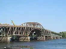 The Little Bay Bridge, or Little Bay Bridges, are a pair of four-lane girder bridges that carry a concurrency of U.S. Route 4, NH Route 16, and the Spaulding Turnpike across the mouth of Little Bay where it meets the Piscataqua River, between the city of Dover and the town of Newington in New Hampshire. As of August 2019, the bridges carry seven motor vehicle lanes with four shoulders, and one non-motorized multi-use path while the General Sullivan Bridge is closed.[3]