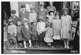 In New York City many immigrants would work as pack peddlers. They would often carry forty to eighty pounds of notions, which they would sell uptown during the day and further afield in upstate New York during the summer.[4] Other peddlers would sell luxury goods and religious objects such as damask cloth, embroideries, rosaries and crosses made from olive wood from the Holy Land.[4] In order to maintain this constant flow of these goods many Syrians also started import-export businesses in order to sell directly to these peddlers. Many women worked as peddlers as well, mainly selling sundry goods, however they also labored as seamstresses, mill workers, factory workers, and entrepreneurs in their own right. Marie el-Khoury, a prominent jewelry designer, was one of the most successful Syrian-born business owners in the city. Originally trained as a jeweler under her father, she moved the business from its original location on the boardwalk in Atlantic City, New Jersey to Manhattan after his death.