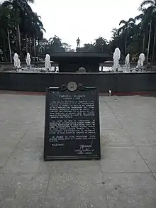 ![]() Liwasang Bonifacio and the Manila Central Post Office. The center of the plaza is dominated by a bronze statue of Andrés Bonifacio | |